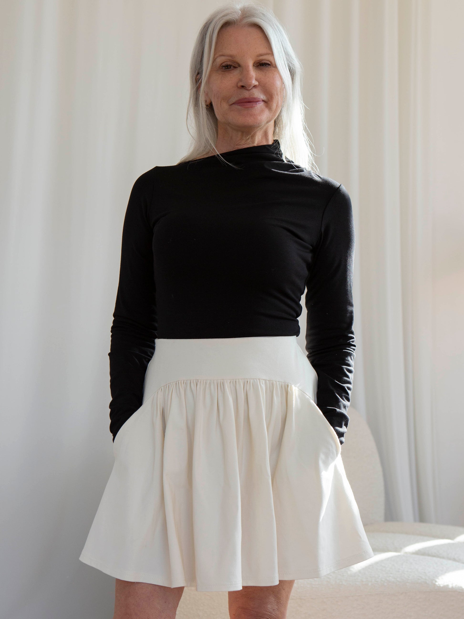 The Belle Skort combines the carefree playfulness of a floaty mini skirt with the confidence-boosting coverage of shorts. It’s crafted from our stretchy, buttery soft organic bamboo and has a flattering dipped waistband that gently shapes and supports. It’s also fully opaque, so you can breeze through every set of summer plans without a second thought.